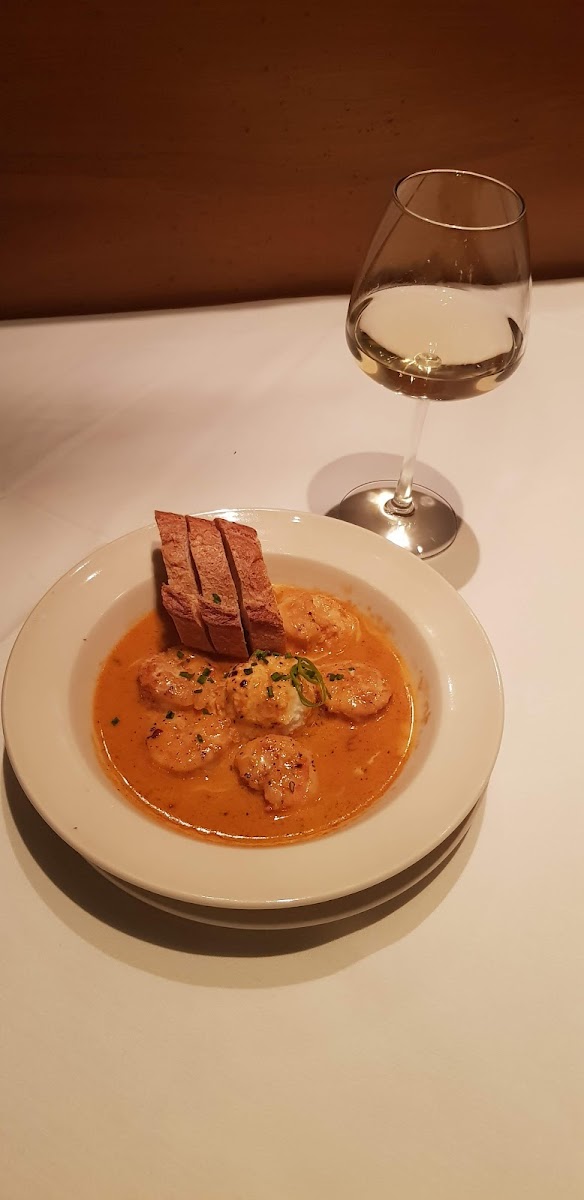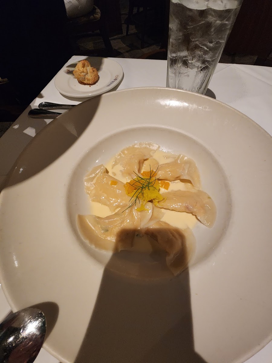 Very good food and service. Starting with the good the lobster bisque and calamari was really good. I have definitely never had calamari like I've had here. The star of the show was the desserts. The creme brulee was kind of basic creme brulee there wasn't much special with it but the coconut thing was really good and I've never had that anywhere. The biscuits they serve were hard as rocks and we're just not good at all. The main thing I didn't like is I got a reservation and didn't realize there was a dress code for this place so when we got there they kind of said that I was looking bad even though I was just wearing a T-shirt and pants. But you have to have I guess some kind of button up top with a collar or something to be able to sit in the restaurant. But she did let us sit in the bar area. And we did only come here to get dessert but there's another rule that they don't tell you about is that you have to order more than just dessert. Which I think is a weird rule but whatever. It just made us feel extremely uncomfortable and I definitely did not like that. but the food that we got made up for the fact and we actually would like to come back again because there's other stuff on their menu that look very good